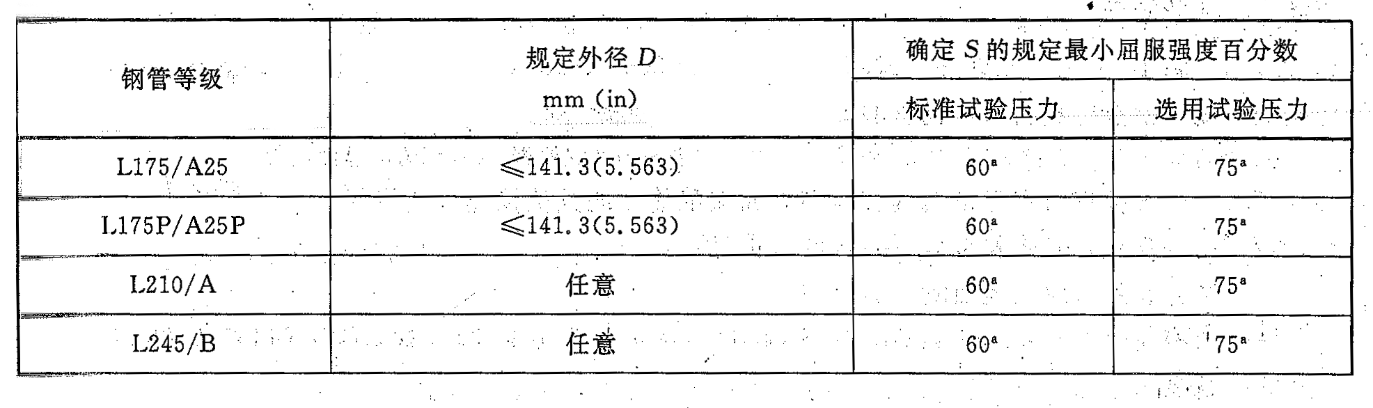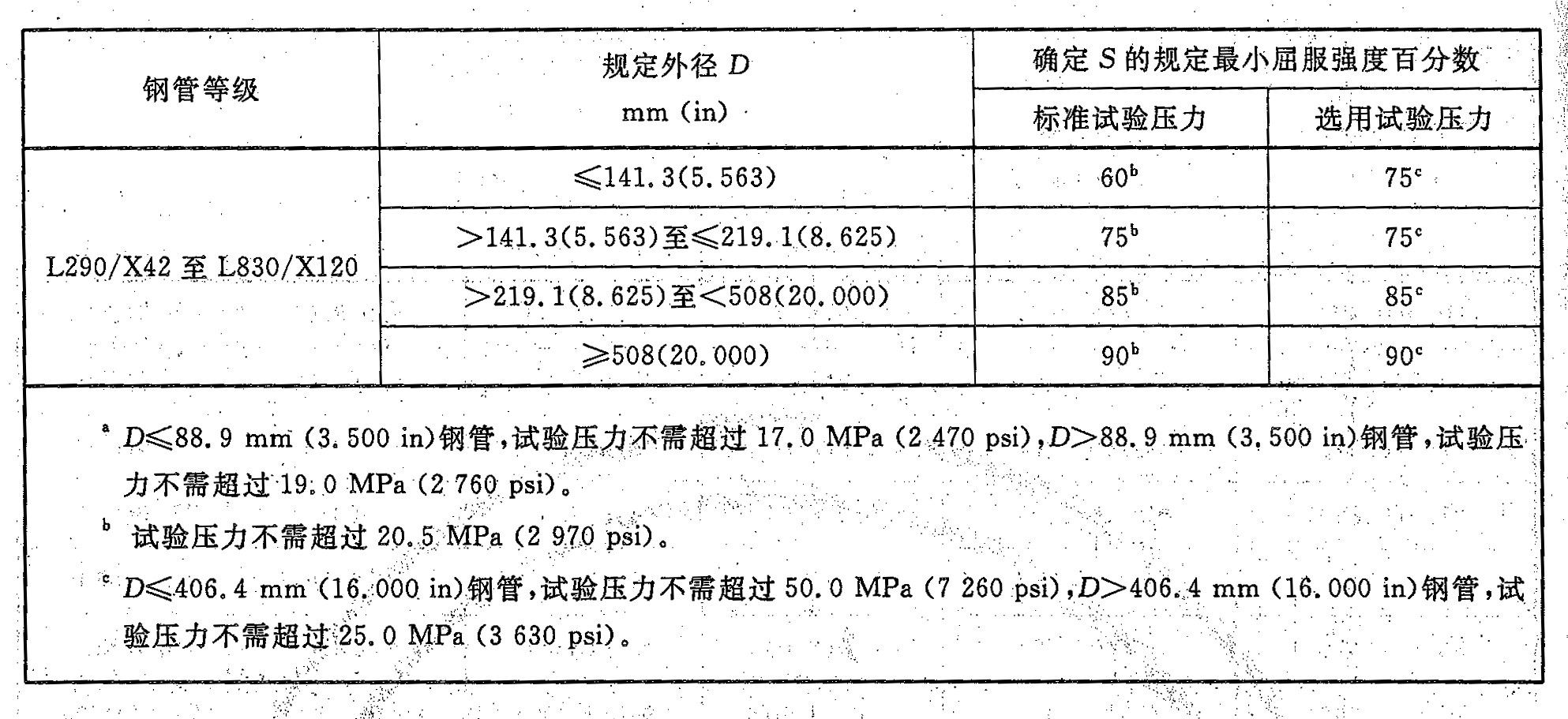 S-靜水壓試驗環(huán)向應力,單位為兆帕(磅每平方英寸)Mpa(psi),具體數(shù)值為制造標準中規(guī)定的最小屈服值選取百分數(shù)x材質(zhì)標準中規(guī)定的最低屈服值