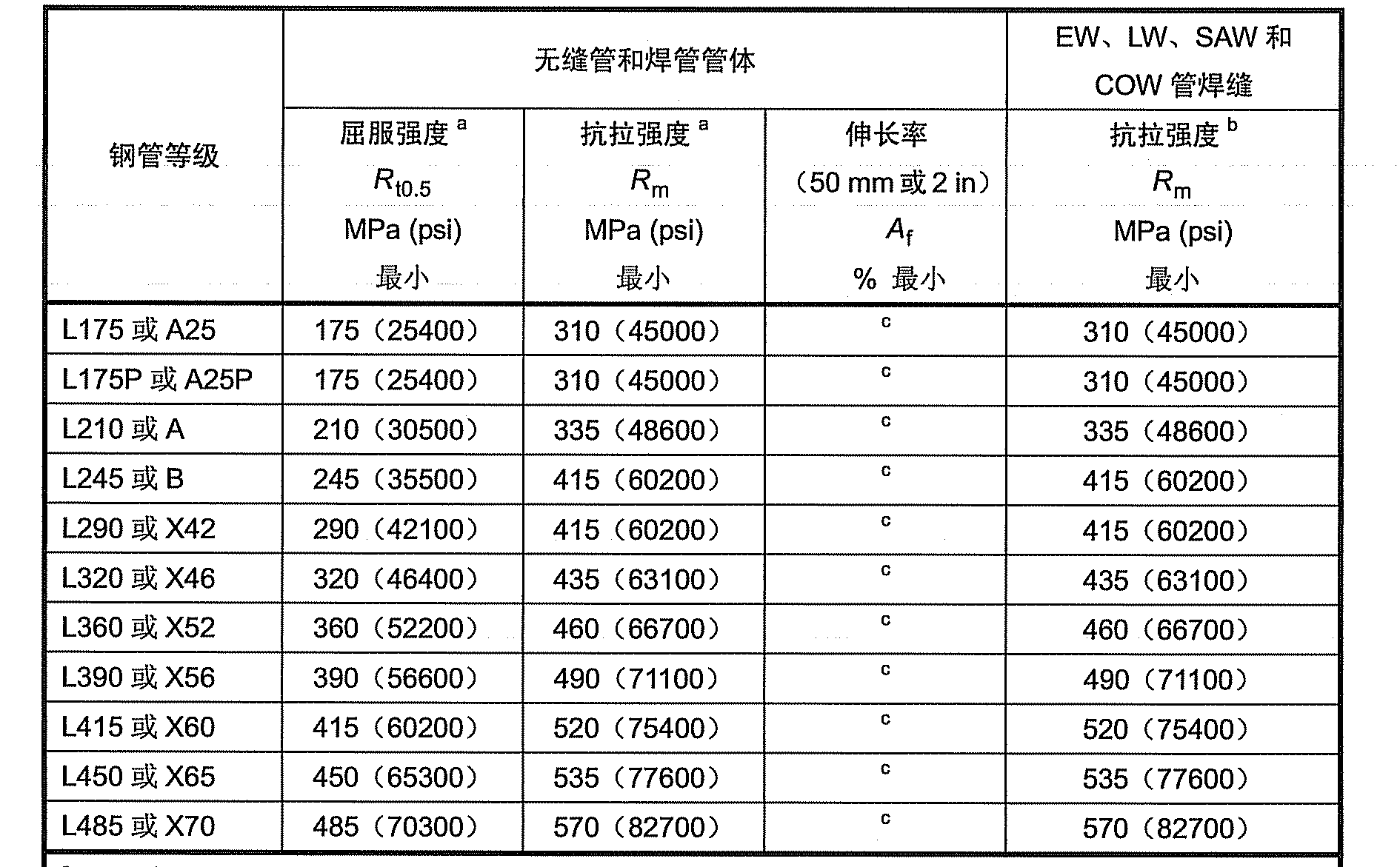 意思是:鋼管材質(zhì)為L290(X42)-L830(X120)時,219mm<鋼管口徑<508mm時,選取的最小強度百分數(shù)為85%,還用上述例子的規(guī)格舉例,不同的是,材質(zhì)改為L290(X42)